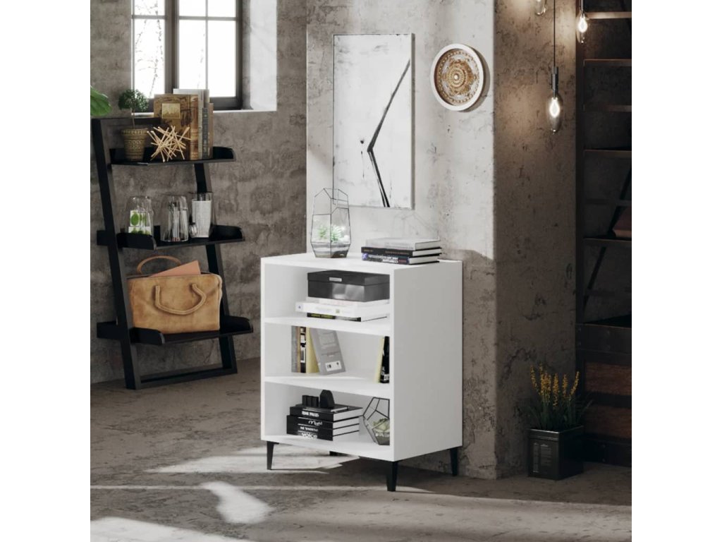 Táto skrinka na knihy je vyrobená z kompozitného dreva, vďaka čomu je pevná, trvácna a má dlhú životnosť. Kovové nohy jej dodávajú potrebnú stabilitu. Príručná skrinka má 3 police, ktoré poskytujú množstvo úložného priestoru. Pevná vrchná doska je ako stvorená na vystavenie ozdobných predmetov, rámikov s fotkami alebo kvetov v kvetináči. Úložná skrinka sa navyše dá ľahko očistiť navlhčenou handričkou.
