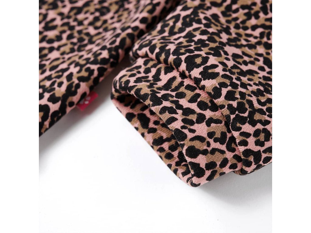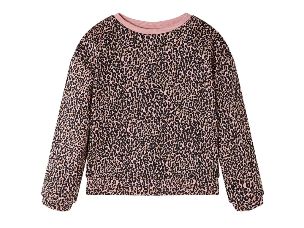 Táto detská mikina má dlhé rukávy, leopardiu potlač a rebrovaný úplet s okrúhlym výstrihom. Pulóverová mikina je vyrobená z 95% bavlny a 5% elastanu pre pohodlie a priedušnosť. Mäkká flísová podšívka poskytuje extra teplo.