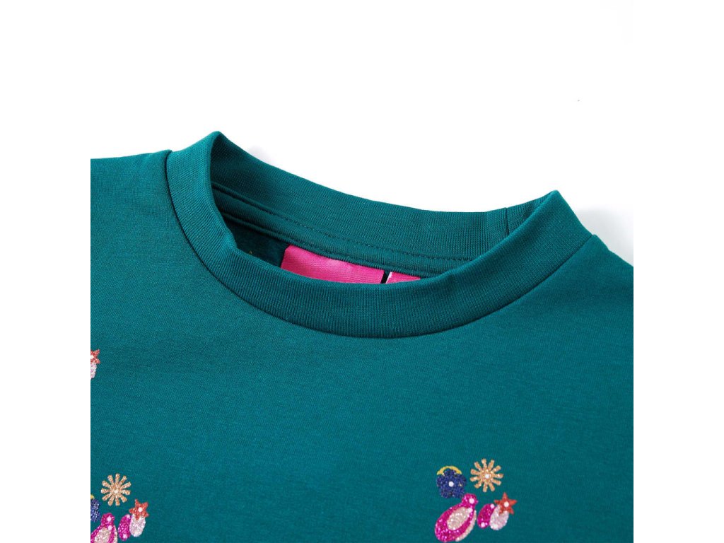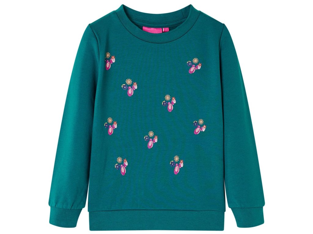 Táto detská mikina má dlhé rukávy, okrúhly výstrih a rebrované lemy na manžetách, výstrihu a v spodnej časti. Detský top má vpredu krásnu trblietavú potlač. Pulóverová mikina je vyrobená z 95% bavlny a 5% elastanu pre pohodlie a priedušnosť. Mäkká flísová podšívka poskytuje extra teplo.