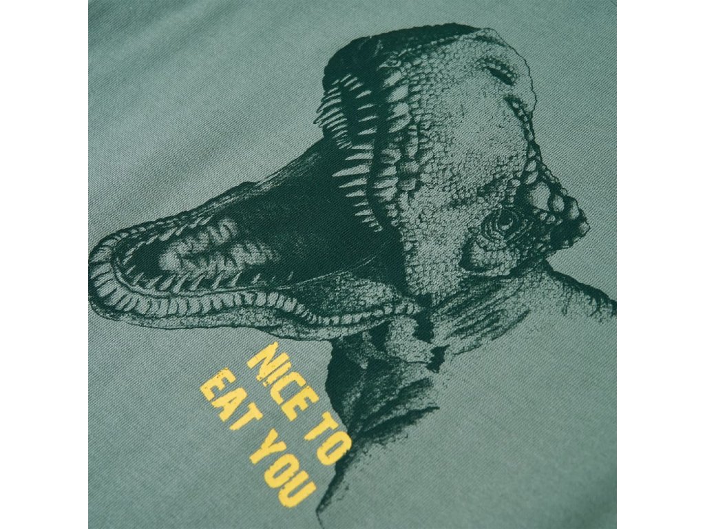 Toto detské tričko má krátke rukávy, okrúhly výstrih a rovný strih. Detské tričko má na sebe veľkého dinosaura. Detské tričko s krátkym rukávom je vyrobené zo 100% bavlny pre mäkkosť a pohodlné nosenie.