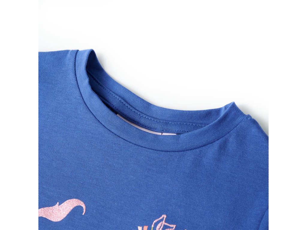Toto detské tričko má krátke rukávy, okrúhly výstrih a rovný strih. Toto modré tričko má na hrudi farebného jednorožca. Detské tričko s krátkym rukávom je vyrobené z 95% bavlny a 5% elastanu pre pohodlie a priedušnosť.