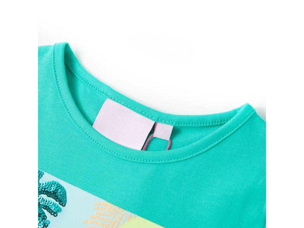 Toto detské tričko má krátke rukávy, okrúhly výstrih a rovný strih. Toto tričko má flitrového plameniaka obklopeného listami. Toto tričko pre deti má tiež potlač s textom "PARADISE". Detské tričko s krátkym rukávom je vyrobené z 95% bavlny a 5% elastanu pre pohodlie a priedušnosť.