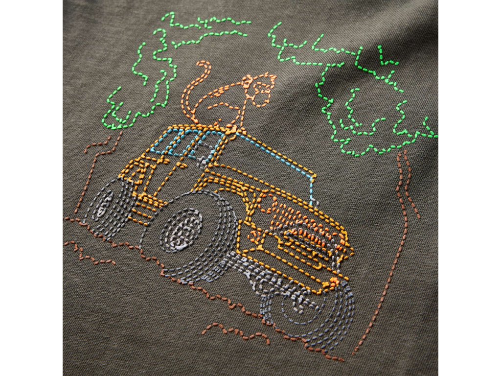Toto detské tričko má dlhé rukávy, okrúhly výstrih a rovný model. Toto khaki tričko obsahuje džíp a opicu v lese. Detské tričko s dlhým rukávom je vyrobené zo 100% bavlny, ktorá je ošetrená silikónovým a enzymatickým praním pre mäkký a pohodlný dotyk.