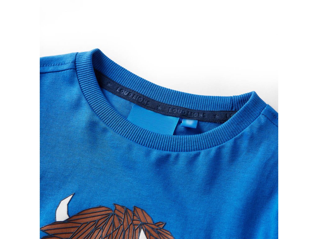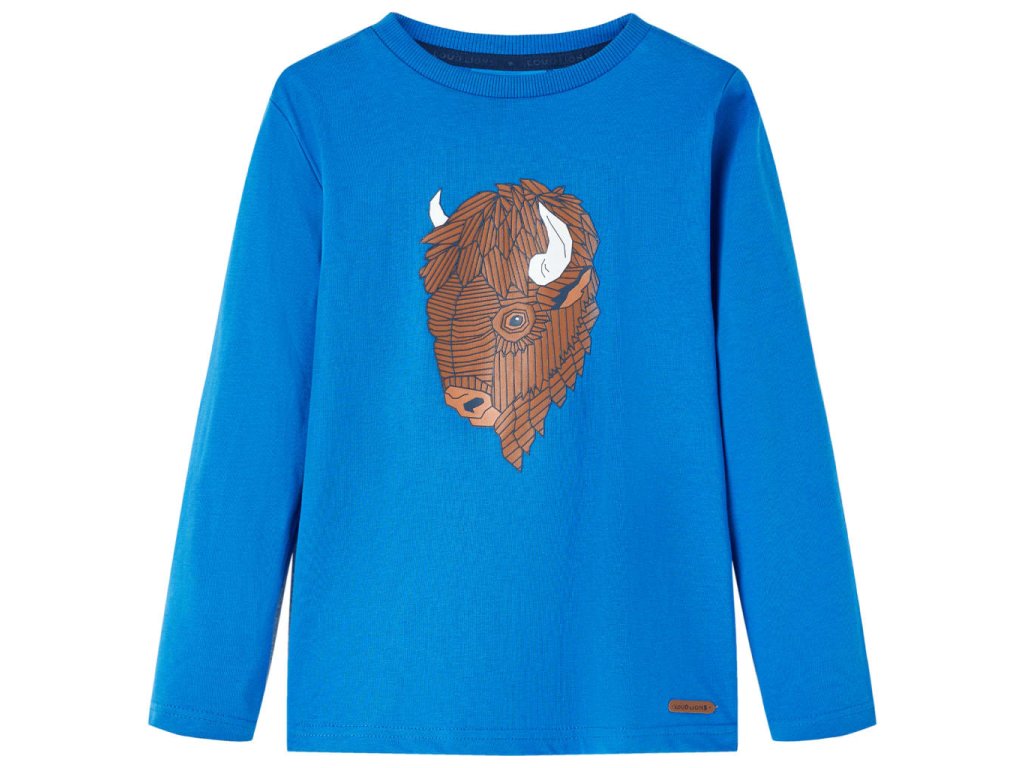 Toto detské tričko má dlhé rukávy, okrúhly výstrih a rovný model. Toto kobaltovo modré tričko zobrazuje veľký dobytok. Detské tričko s dlhým rukávom je vyrobené zo 100% bavlny, ktorá je ošetrená silikónovým a enzymatickým praním pre mäkký a pohodlný dotyk.