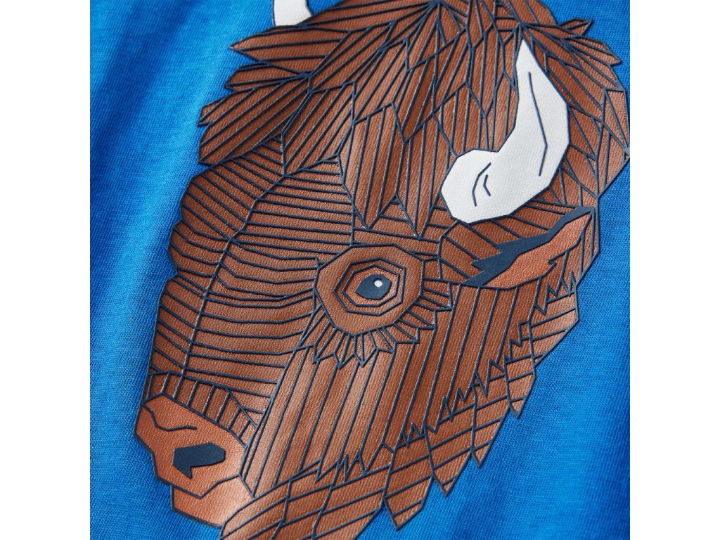 Toto detské tričko má dlhé rukávy, okrúhly výstrih a rovný model. Toto kobaltovo modré tričko zobrazuje veľký dobytok. Detské tričko s dlhým rukávom je vyrobené zo 100% bavlny, ktorá je ošetrená silikónovým a enzymatickým praním pre mäkký a pohodlný dotyk.