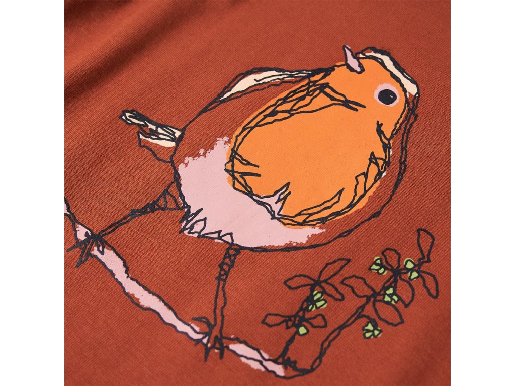 Toto detské tričko má dlhé rukávy, okrúhly výstrih a rovný model. Toto detské tričko má potlač s krásnym vtáčikom. Detské tričko s dlhým rukávom je vyrobené z mäkkého materiálu s obsahom 95% bavlny a 5% elastanu pre extra pohodlie a priedušnosť.