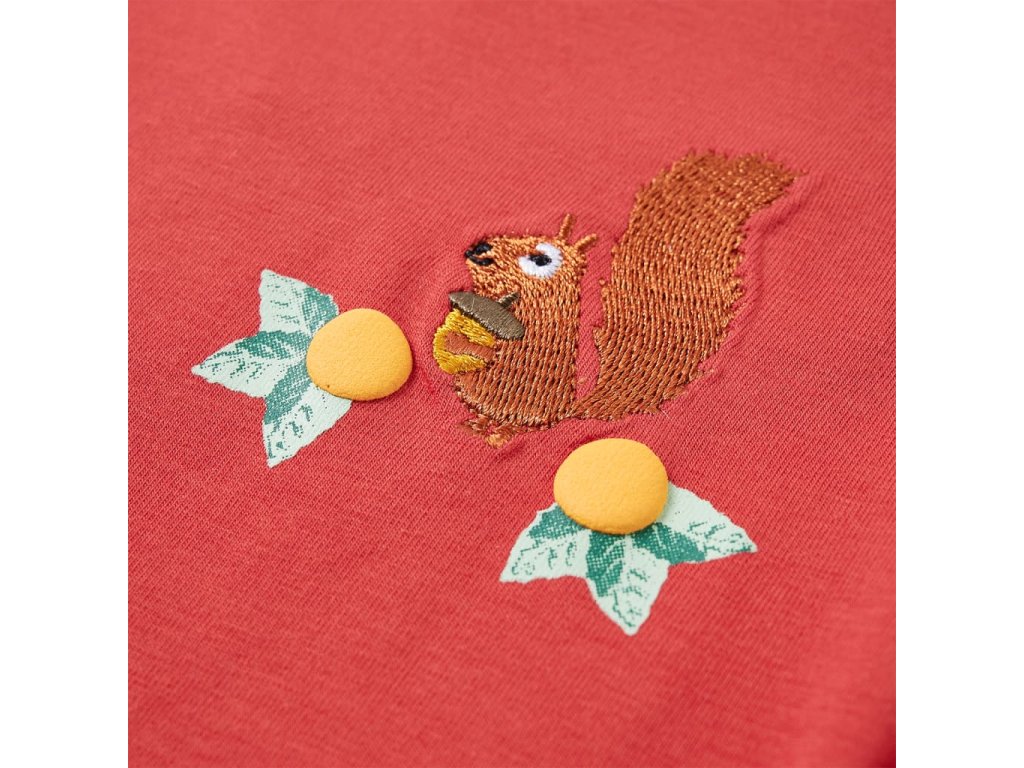 Toto detské tričko má dlhé rukávy, okrúhly výstrih a rovný model. Na detskom tričku je krásna veverička, ktorá drží borovicovú šišku. Detské tričko s dlhým rukávom je vyrobené z mäkkého materiálu s obsahom 95% bavlny a 5% elastanu pre extra pohodlie a priedušnosť.
