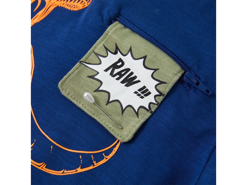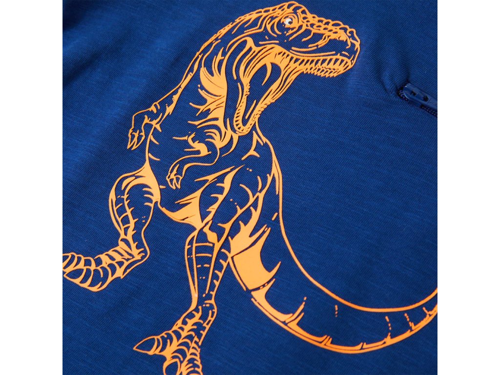 Toto detské tričko má krátke rukávy, rebrovaný okrúhly výstrih a rovný strih. Toto detské tričko má dinosaura a zips. Detské tričko s krátkym rukávom je vyrobené zo 100 % bavlny pre pohodlie a priedušnosť.