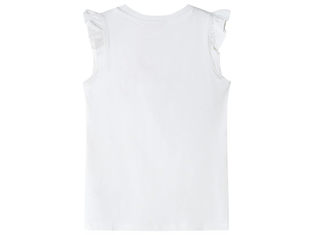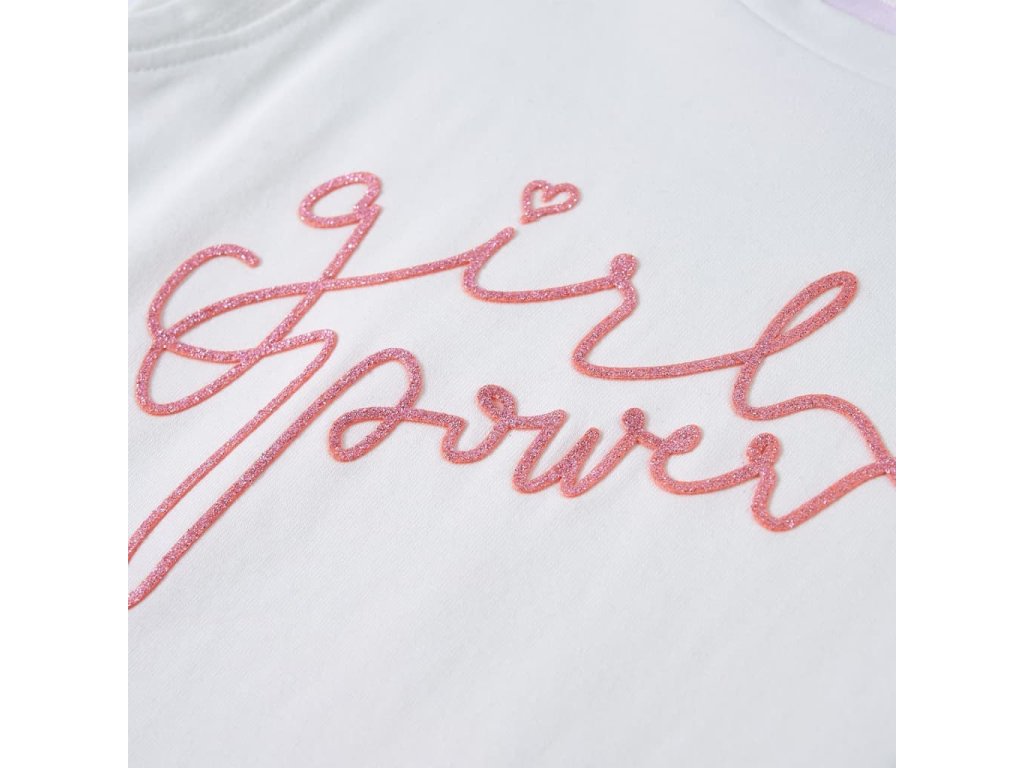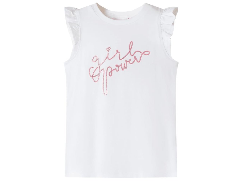 Toto detské tričko má krátke rukávy, okrúhly výstrih a pekné volániky. Vďaka pekným volánikom a trblietavej potlači vyzerá detské tričko elegantne a krásne. Detské tričko s krátkym rukávom je vyrobené z mäkkého materiálu s obsahom 95% bavlny a 5% elastanu pre extra pohodlie a pružnosť.