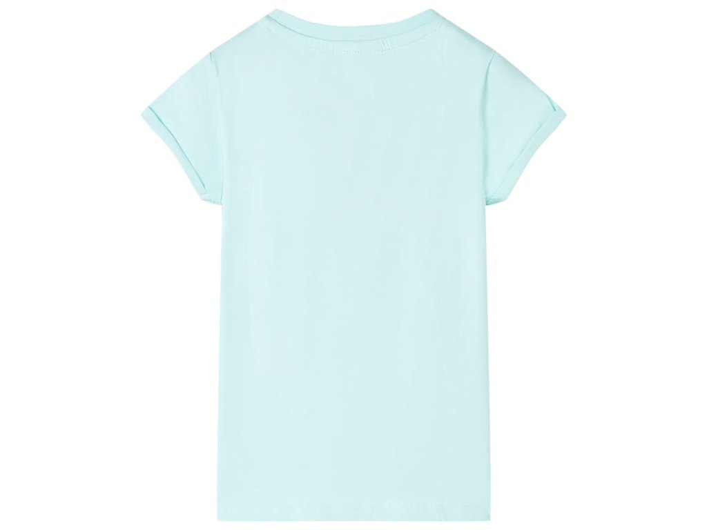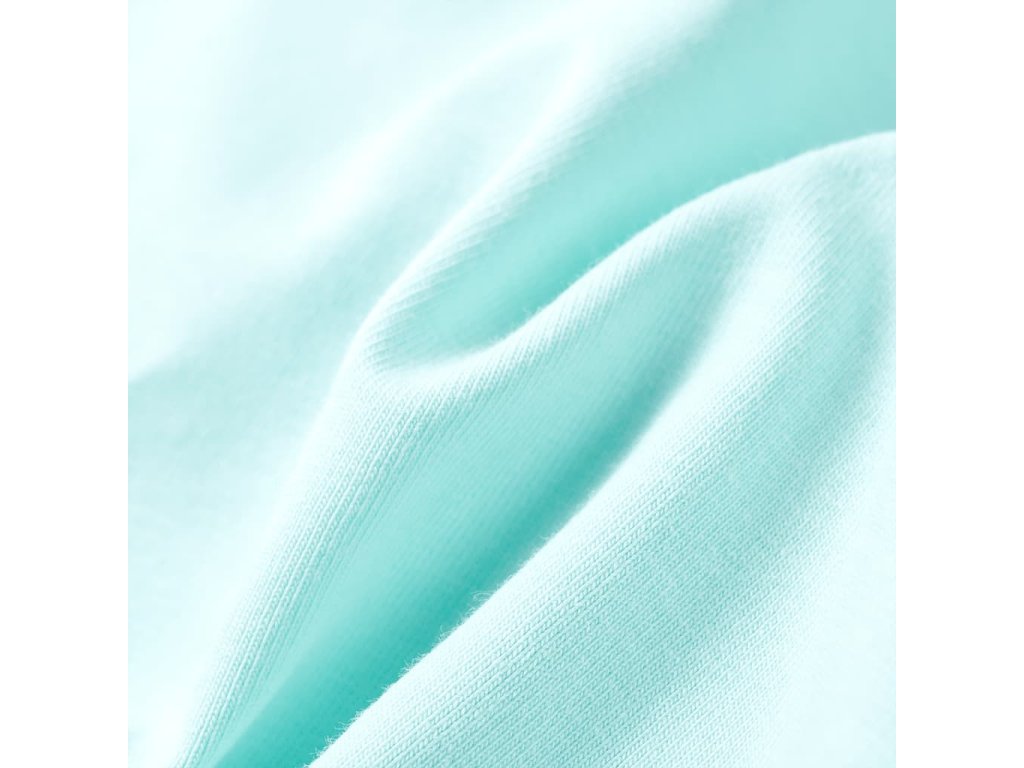 Toto detské tričko má krátke rukávy, okrúhly výstrih a rovný strih. Toto svetlé aqua tričko obsahuje 2 roztomilé kreslené postavičky ovocia, ktoré ležia na plážových ležadlách pod kokosovými palmami. Detské tričko s krátkym rukávom je vyrobené z mäkkého materiálu s obsahom 95% bavlny a 5% elastanu pre pohodlie a priedušnosť.