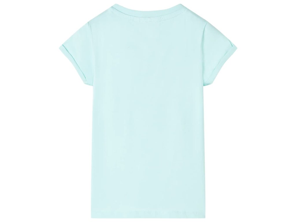 Toto detské tričko má krátke rukávy, okrúhly výstrih a rovný strih. Toto svetlé aqua tričko obsahuje 2 roztomilé kreslené postavičky ovocia, ktoré ležia na plážových ležadlách pod kokosovými palmami. Detské tričko s krátkym rukávom je vyrobené z mäkkého materiálu s obsahom 95% bavlny a 5% elastanu pre pohodlie a priedušnosť.