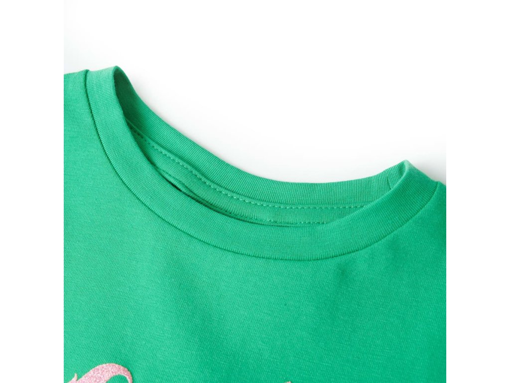 Toto detské tričko má krátke rukávy, okrúhly výstrih a rovný strih. Toto zelené tričko má na hrudi farebného jednorožca. Detské tričko s krátkym rukávom je vyrobené z 95% bavlny a 5% elastanu pre pohodlie a priedušnosť.