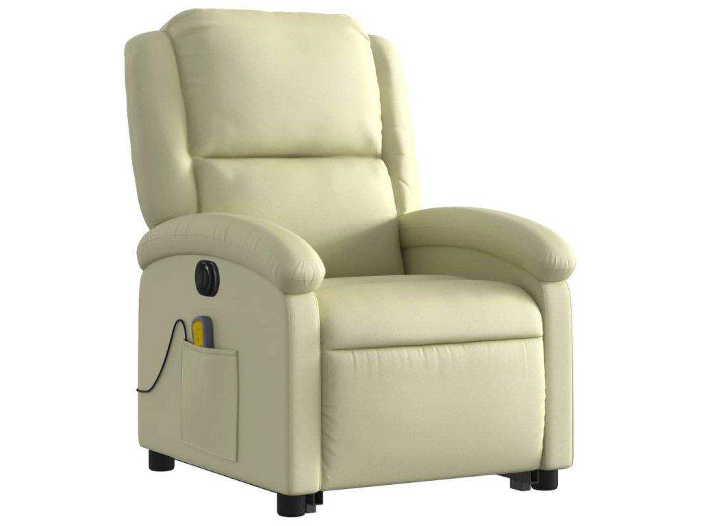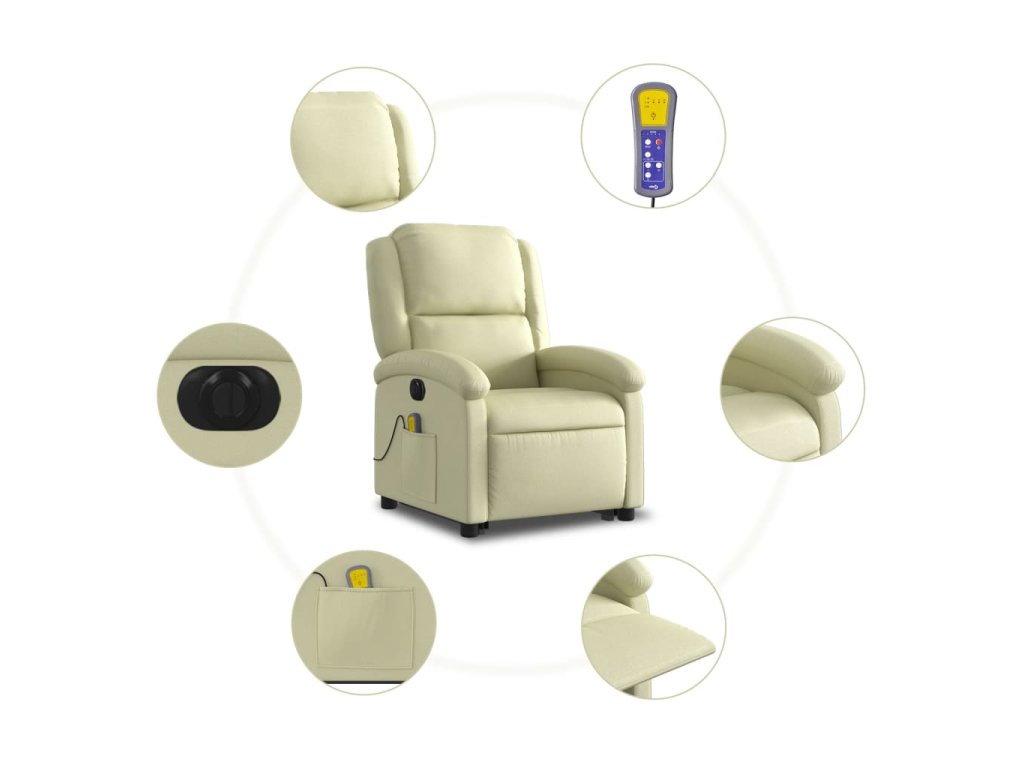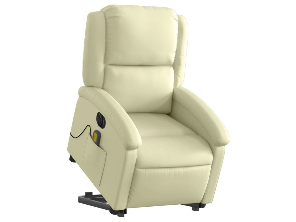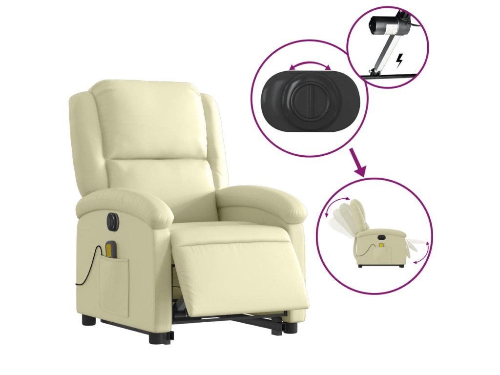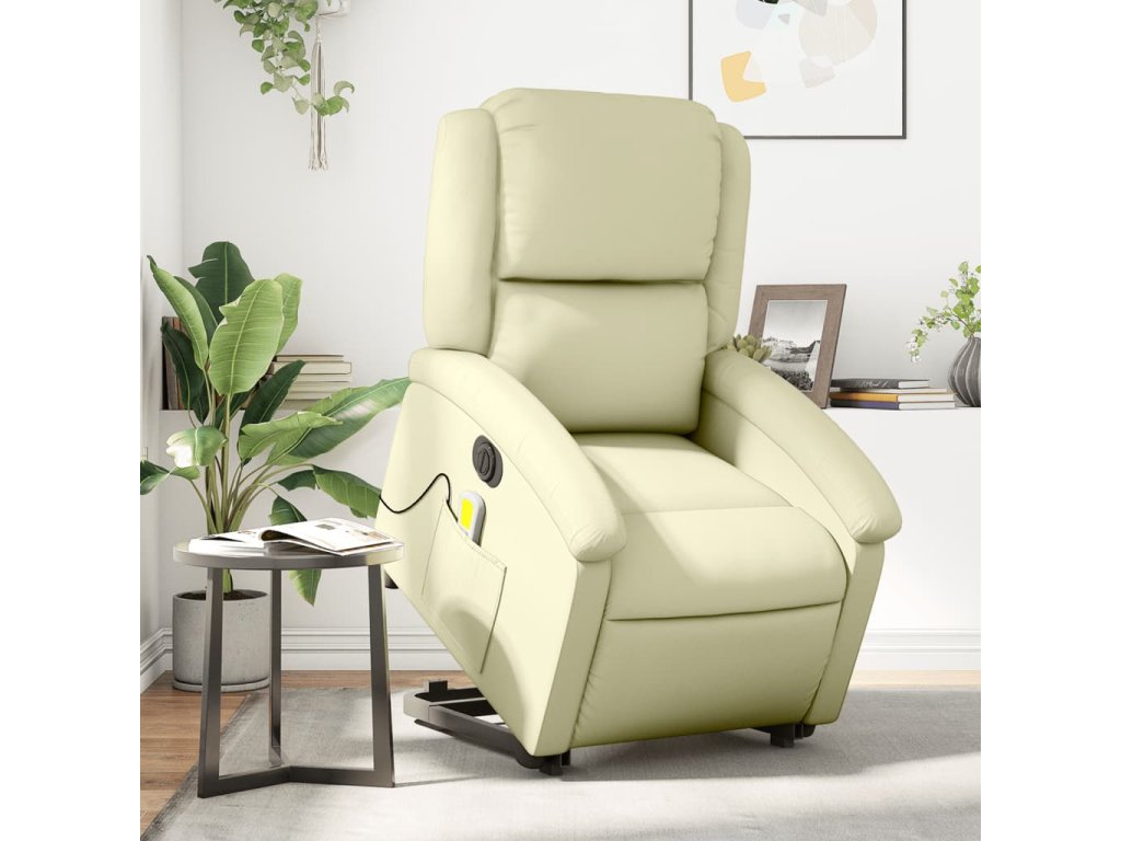 Elektric. zdvíhacie masážne sklápacie kreslo krémové pravá koža 3204276