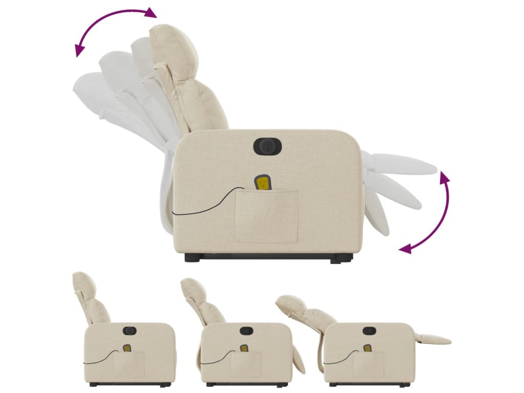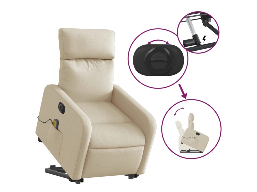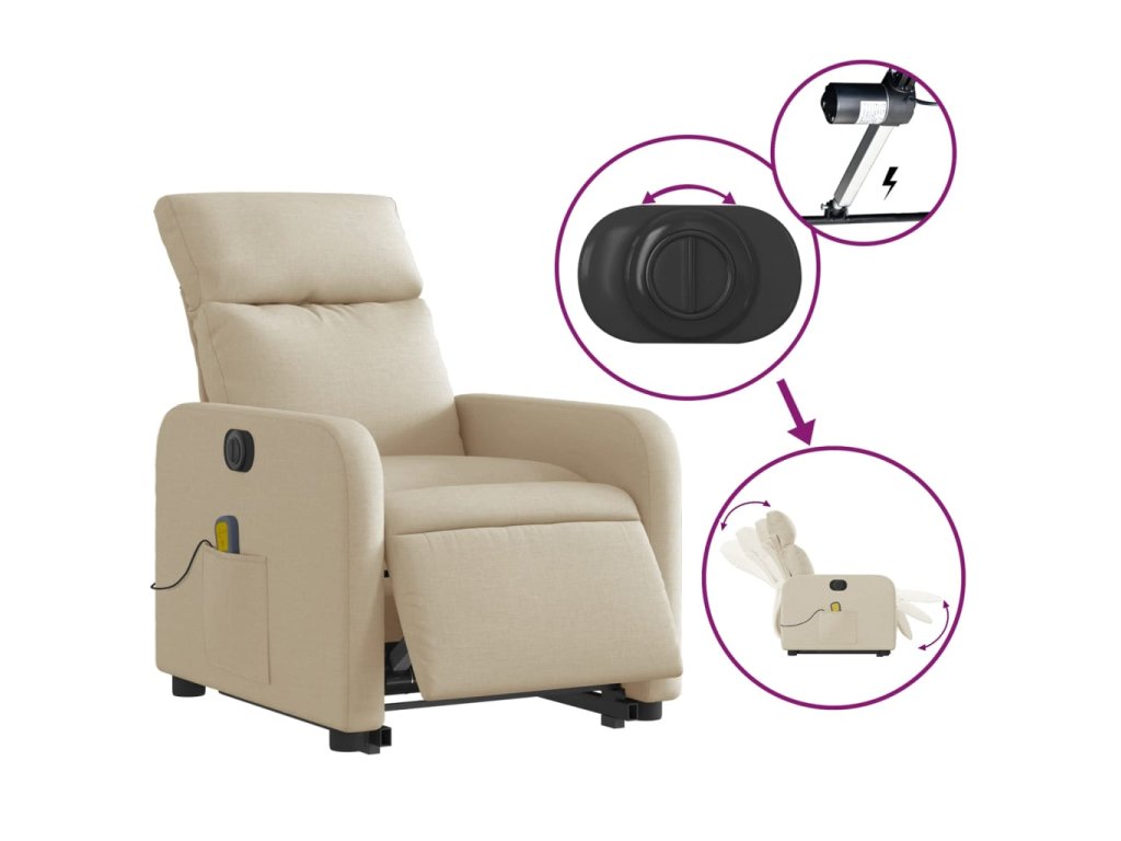 Zdvíhacie a sklápacie elektrické masážne kreslo, krémové, látka 3206734