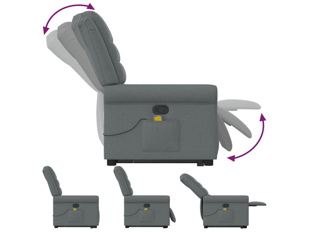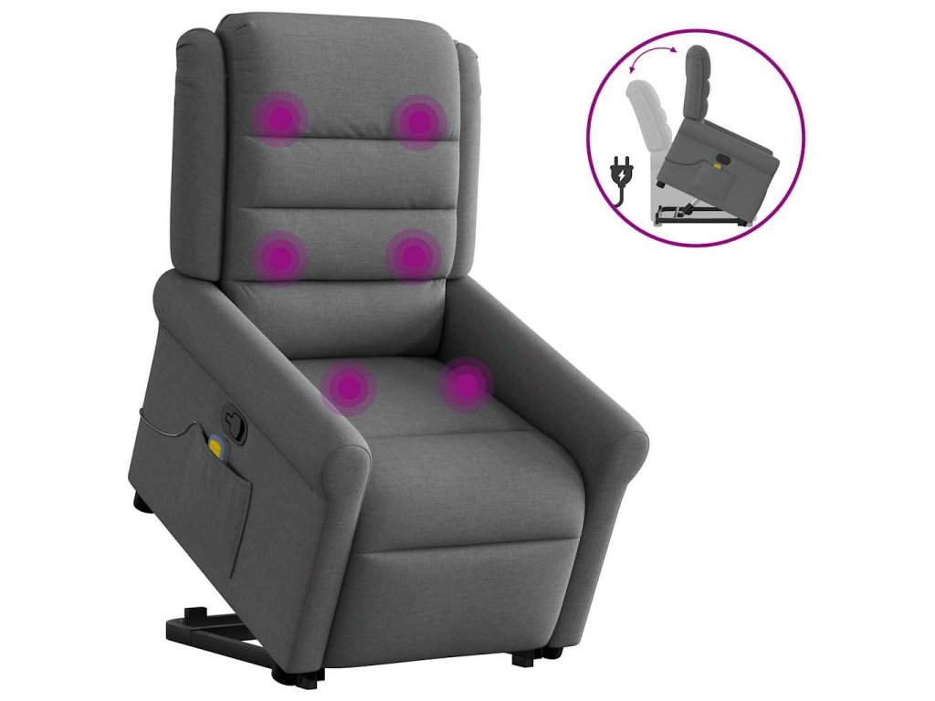 Zdvíhacie a sklápacie masážne kreslo tmavosivé látka 3303325