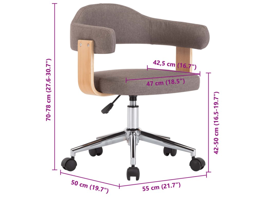 vidaXL Otočné jedálenské stoličky 4ks,sivohnedé, ohýbané drevo a látka 3054906