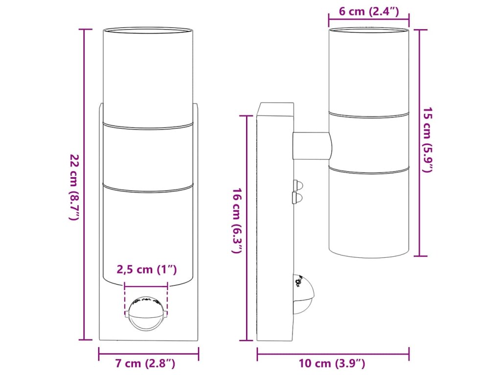Exteriérové nástenné svietidlo 2 pcs Čierna 7 x 10 x 22 cm 4005998