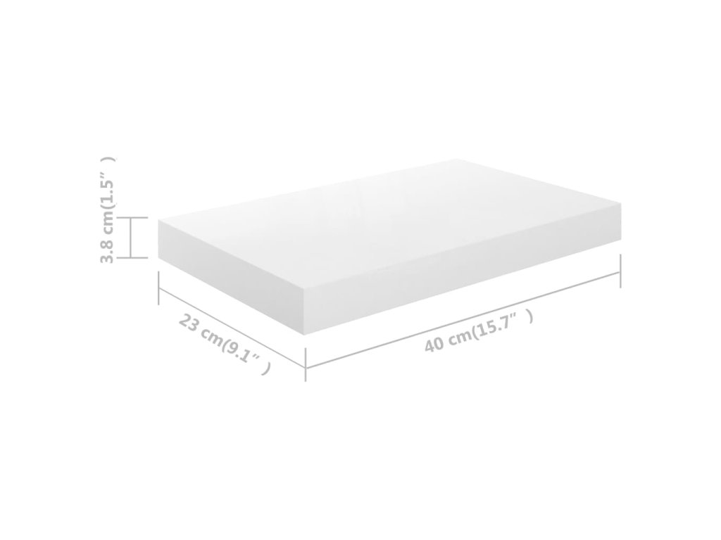 Plávajúce nástenné police 2 ks, lesklé biele 40x23x3,8 cm, MDF 323743