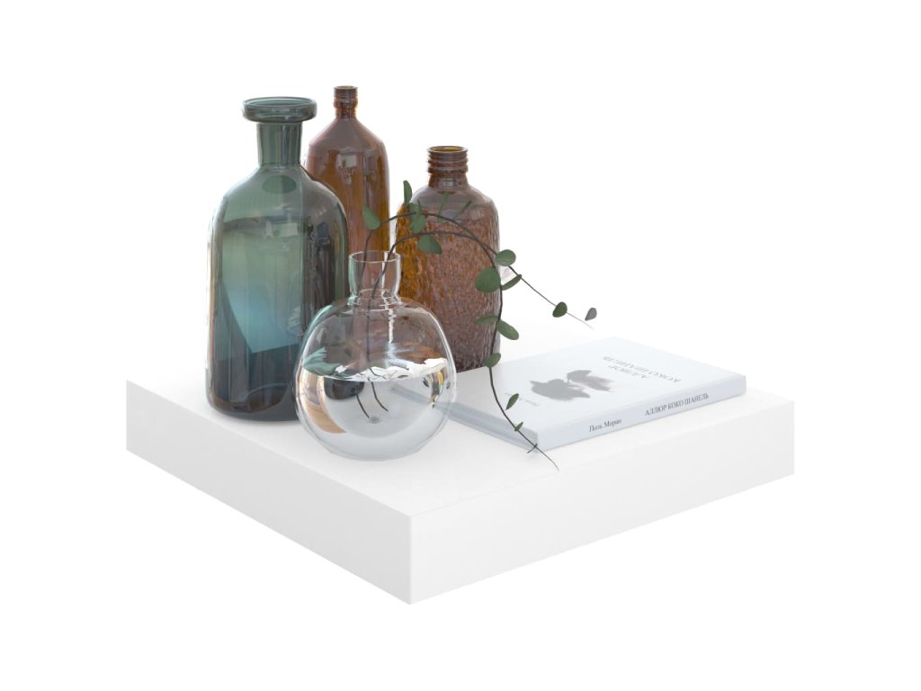 Plávajúce nástenné police 4 ks, lesklé biele 23x23,5x3,8cm, MDF 323741
