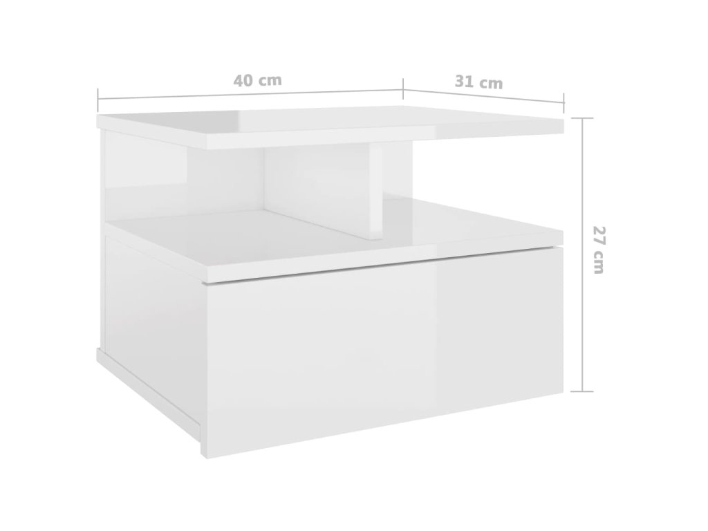 Nástenné nočné stolíky 2 ks, lesklé biele 40x31x27 cm 800418