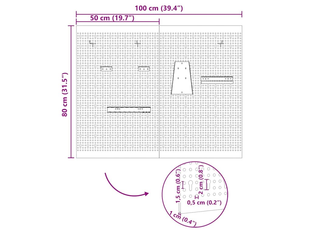 Tento panel na náradie je ideálny na usporiadanie nástrojov vo vašej dielni. Navrhnutý s dôrazom na funkčnosť a moderný vzhľad, má tenký obdĺžnikový tvar, perfektne sa hodí do každej steny. Pevná konštrukcia dreva a ocele zabezpečuje, že náradie bude bezpečne držané a vôbec to nevyzerá zle.