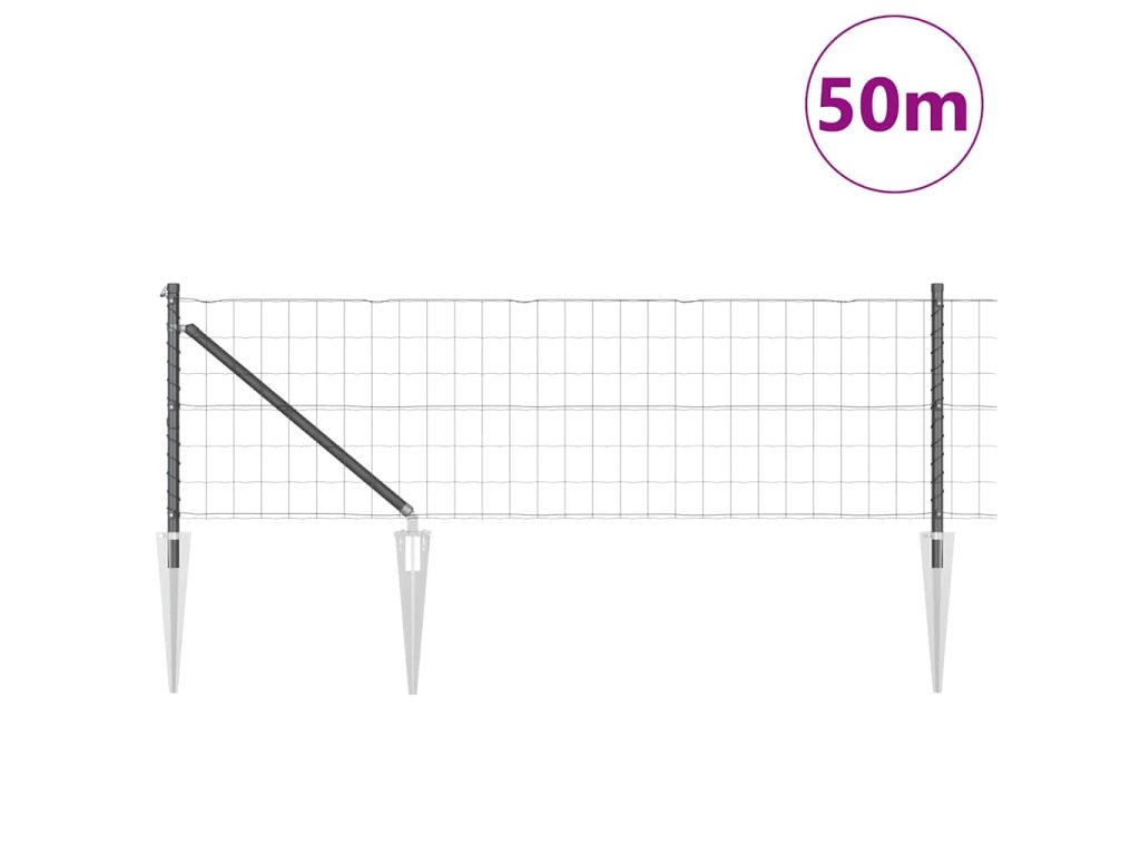 Plot s podperou Sivá 0,6 x 50 m Ocel a PVC 3350698