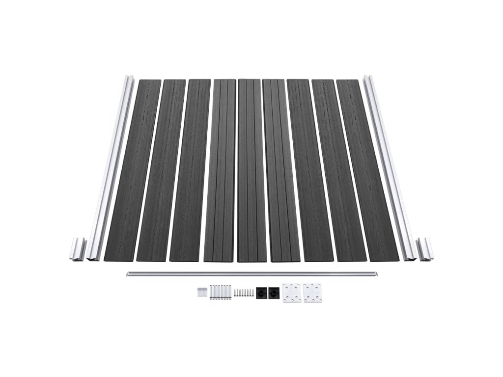 - Materiál: WPC (drevoplastový kompozit), hliník, oceľ