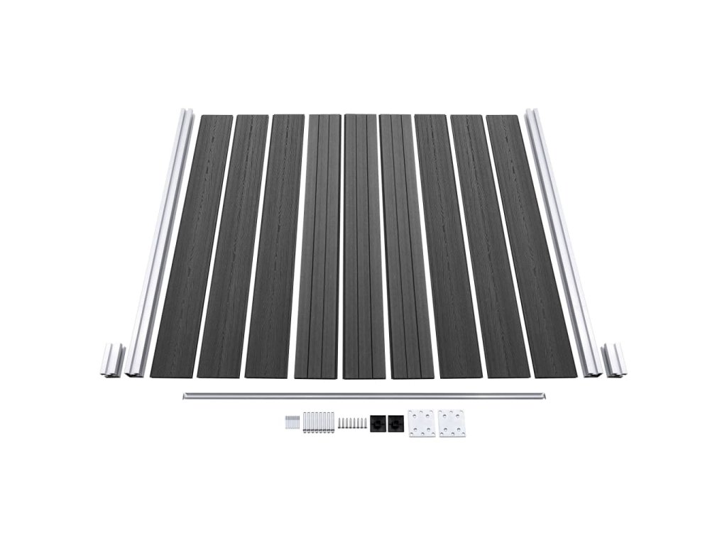 - Materiál: WPC (drevoplastový kompozit), hliník, oceľ