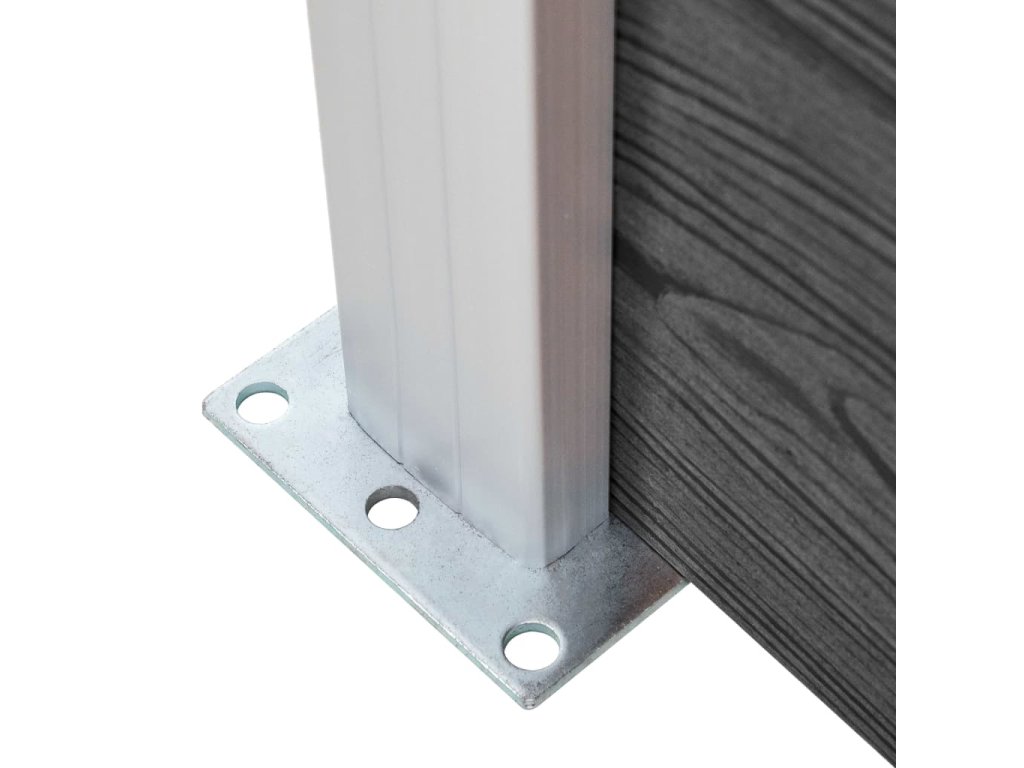 Plotové dosky, ktoré sú navrhnuté s modulárnym systémom, sa ľahko inštalujú a umožňujú vám plot rozširovať. Tieto stĺpiky obsahujú tri sloty, ktoré vám umožňujú zostaviť plot rôznymi spôsobmi, napríklad v priamke (180 stupňov), pravom uhle (90 stupňov) alebo v tvare písmena „T“. Multifunkčné oceľové nožičky sa dajú upevniť dvoma spôsobmi. Prvý spôsob je priskrutkovanie na povrch pomocou dodaných kotviacich skrutiek. Druhým spôsobom je ich ukotvenie do cementového podkladu pomocou uzemňovacieho hrotu (nie je v balení).
