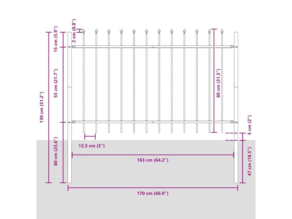 Záhradný plot 7 pcs Sivá 11,9 x 0,8 m Práškovaná oceľ 3334129