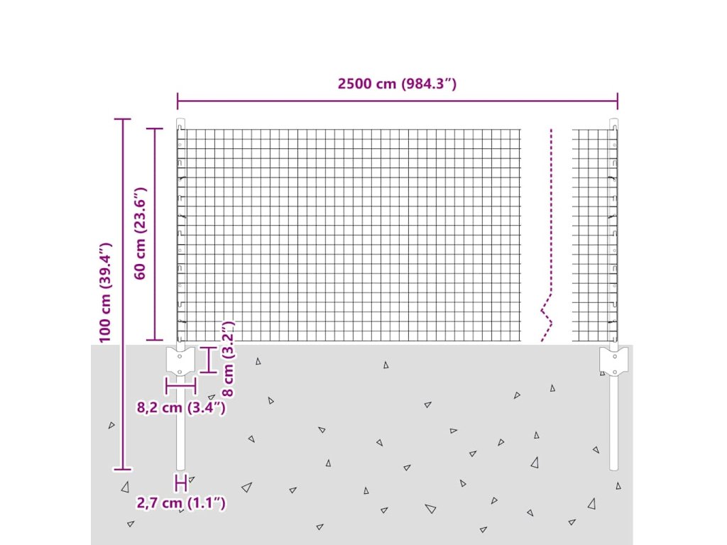 Plot s podperou Sivá 0,6 x 25 m Ocel a PVC 3336592