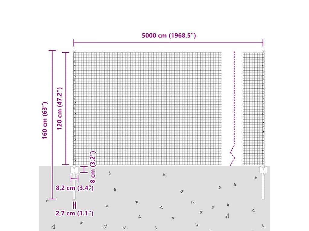 - Celkové rozmery: 5000 x 2,7 x 120 cm (D x Š x V)