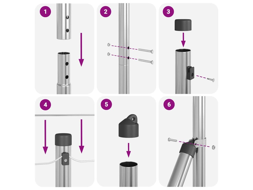 Stĺp na plot. 7 pcs Strieborná Oceľ 42004322