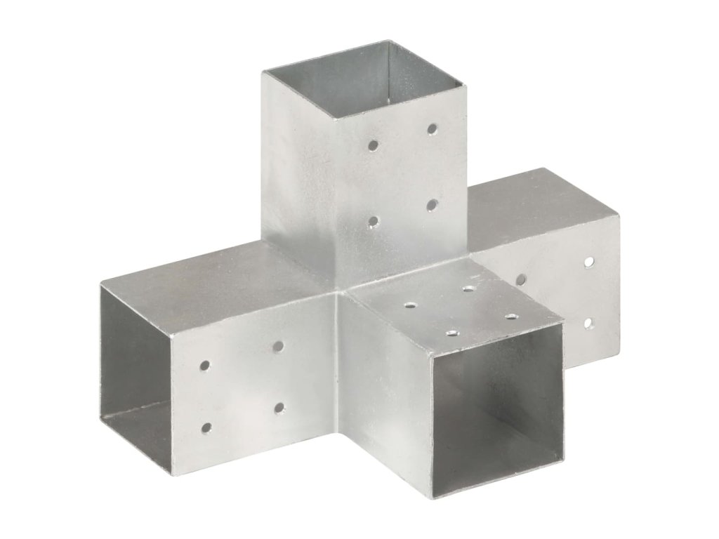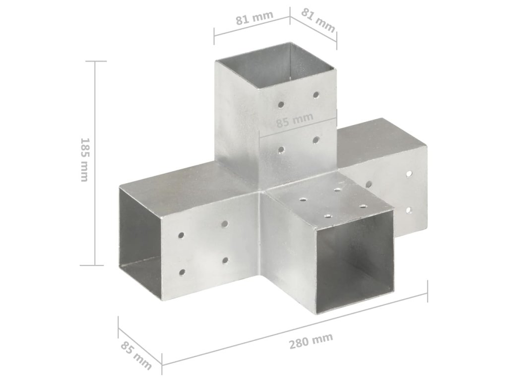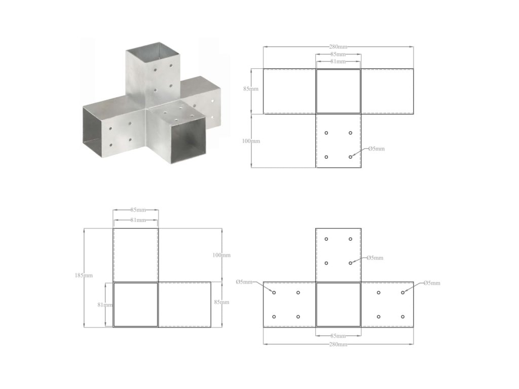 Elektricky galvanizovaná spojka umožňuje ľahké pripojenie a stabilizáciu hranolov. Všetky spojky sú predvŕtané. Táto objímka pre drevené trámy je určená pre 4 štvorcové drevené hranoly s rozmerom 81 mm.