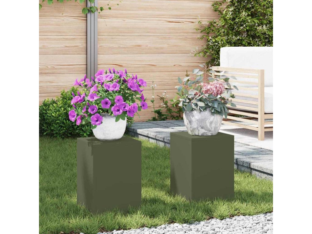 Stojan na rastliny 2 pcs Olivovo zelená 24 x 24 x 35 cm Oceľ 865809