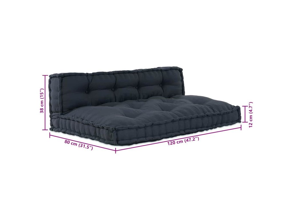 - 1 x poduška na palete: 120 x 80 x 12cm (D x Š x V)