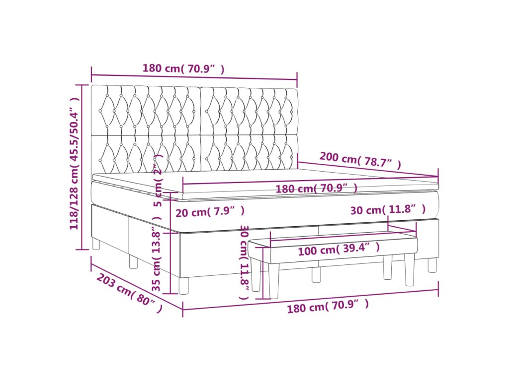- Rozmery: 203 x 180 x 118/128 cm (D x Š x V)