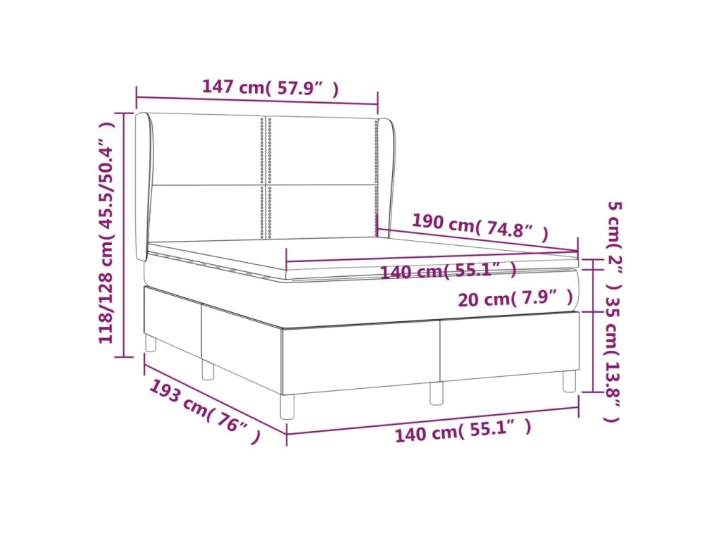 - Rozmery: 140 x 190 x 20 cm (D x Š x V)