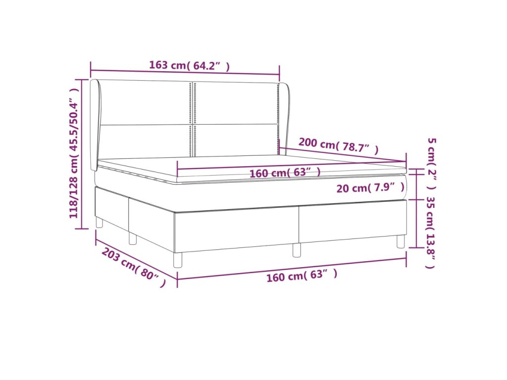 - Rozmery: 203 x 163 x 118/128 cm (D x Š x V)