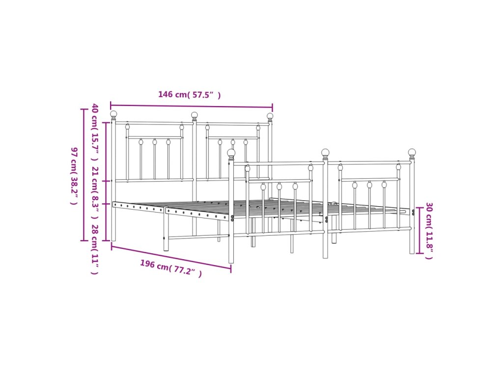 Kovový rám postele s čelom a podnožkou biely 140x190 cm 353604