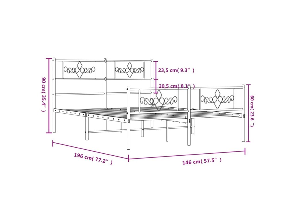 Kovový rám postele s čelom a podnožkou biely 140x190 cm 355334