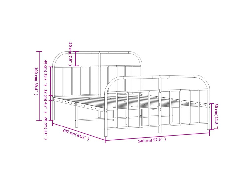 Kovový rám postele s čelom a podnožkou biely 140x200 cm 353703