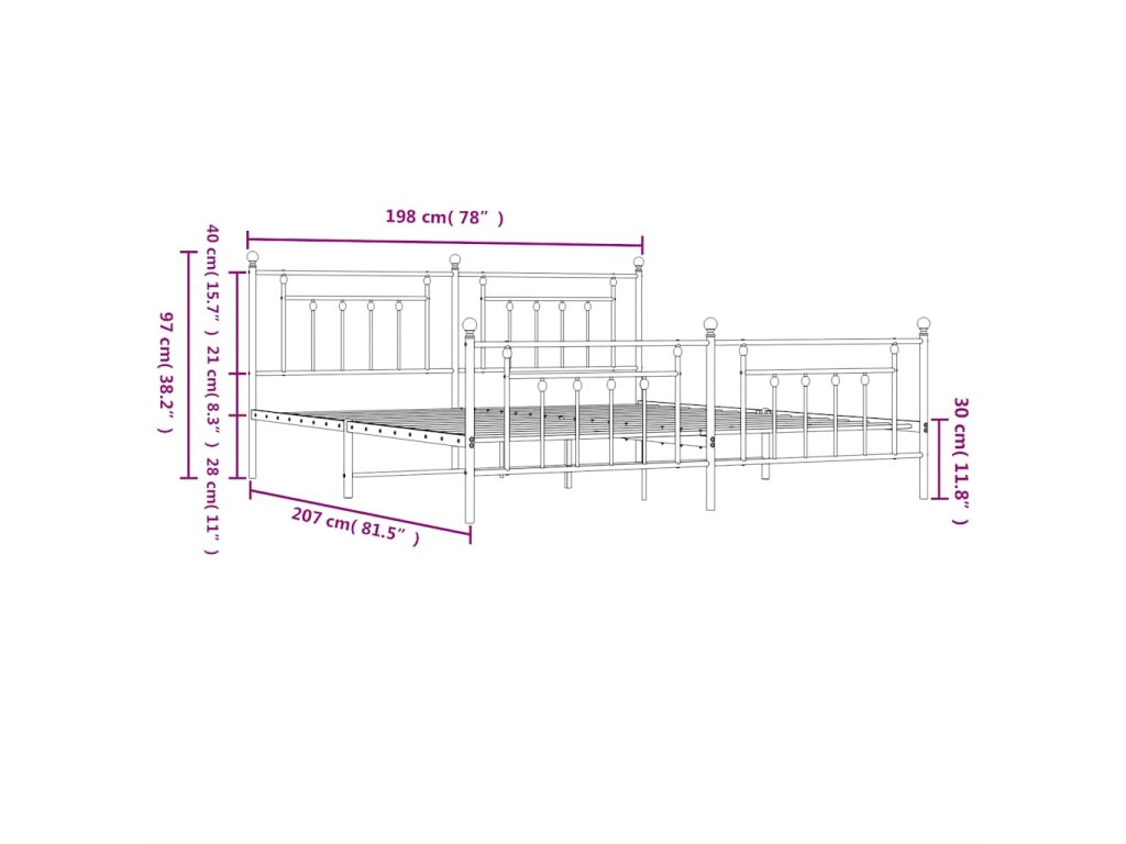 Kovový rám postele s čelom a podnožkou biely 193x203 cm 353610