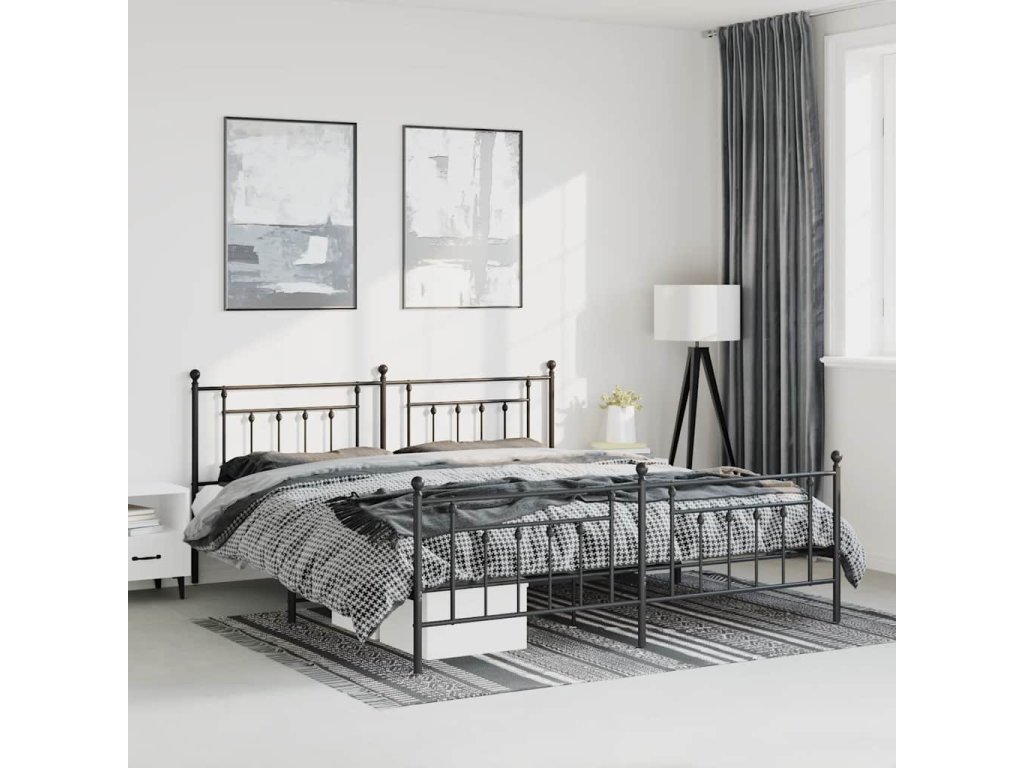 Kovový rám postele s čelom a podnožkou čierny 193x203 cm 353561