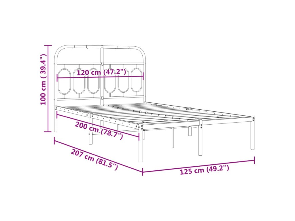 Kovový rám postele s čelom biely 120x200 cm 377164