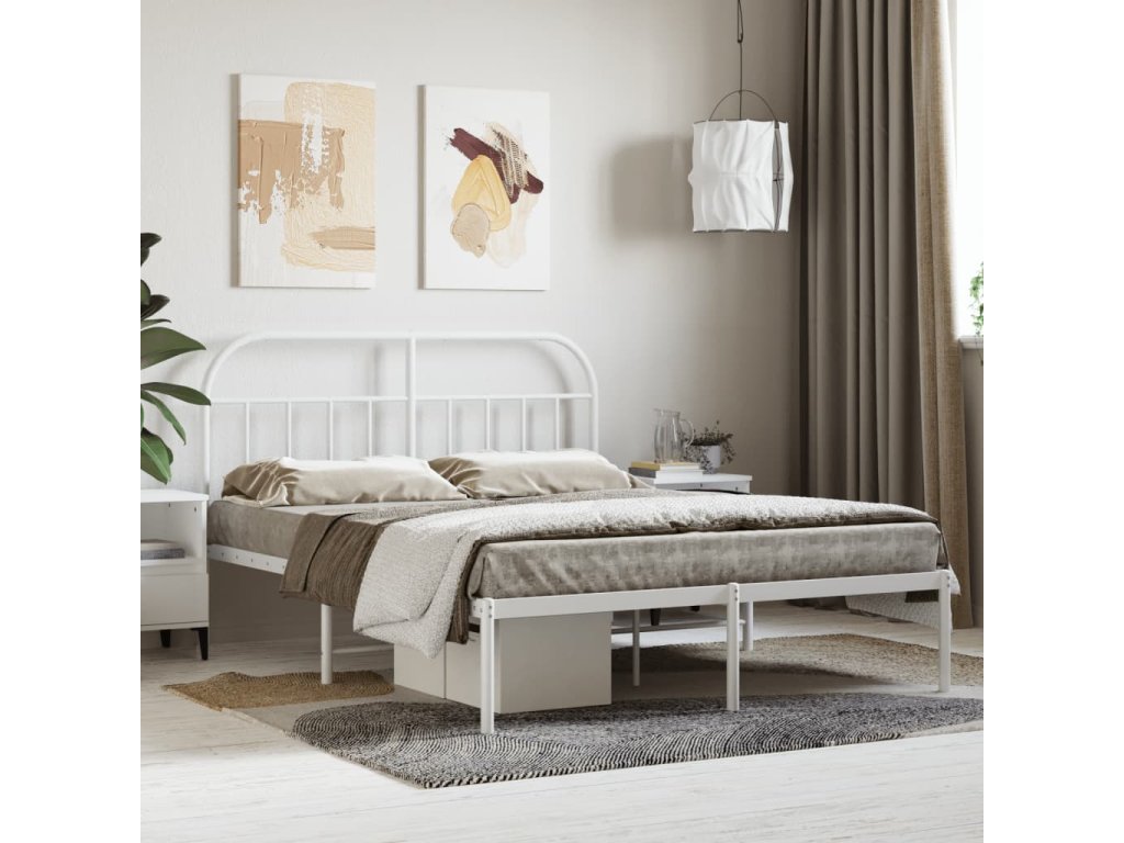 Kovový rám postele s čelom biely 140x190 cm 353684