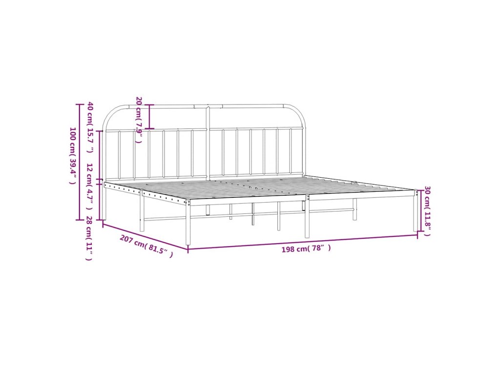 Kovový rám postele s čelom biely 193x203 cm 353690