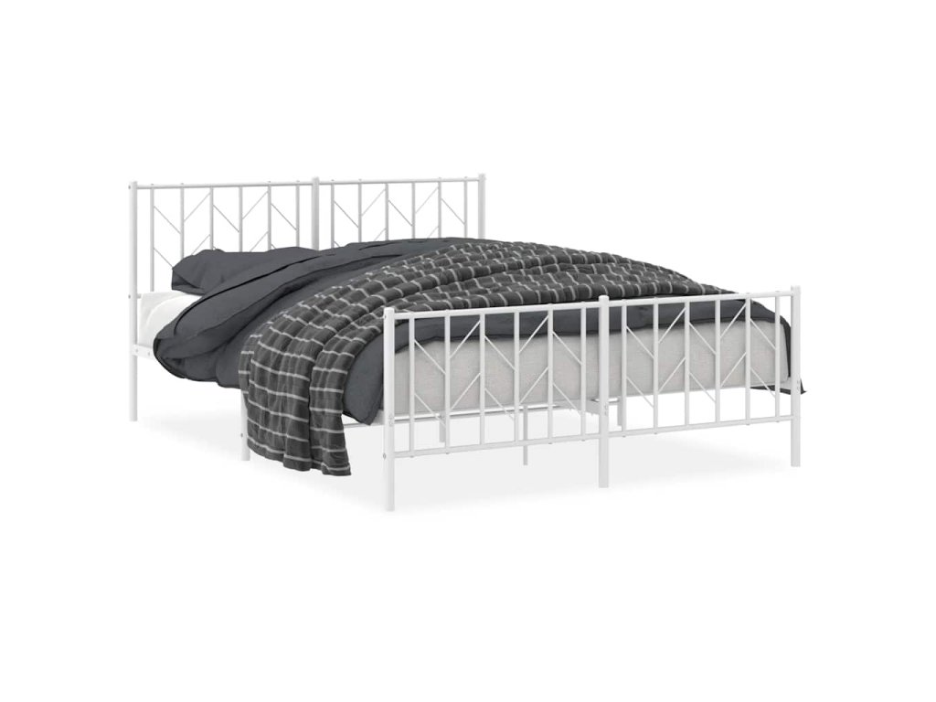 Kovový rám postele s predným a zadným čelom biely 150x200 cm 374506