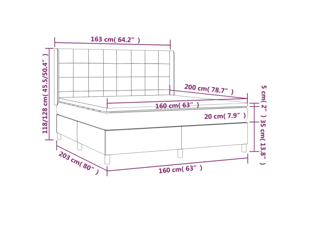 - Celkové rozmery: 203 x 163 x 118/128 cm (D x Š x V)
