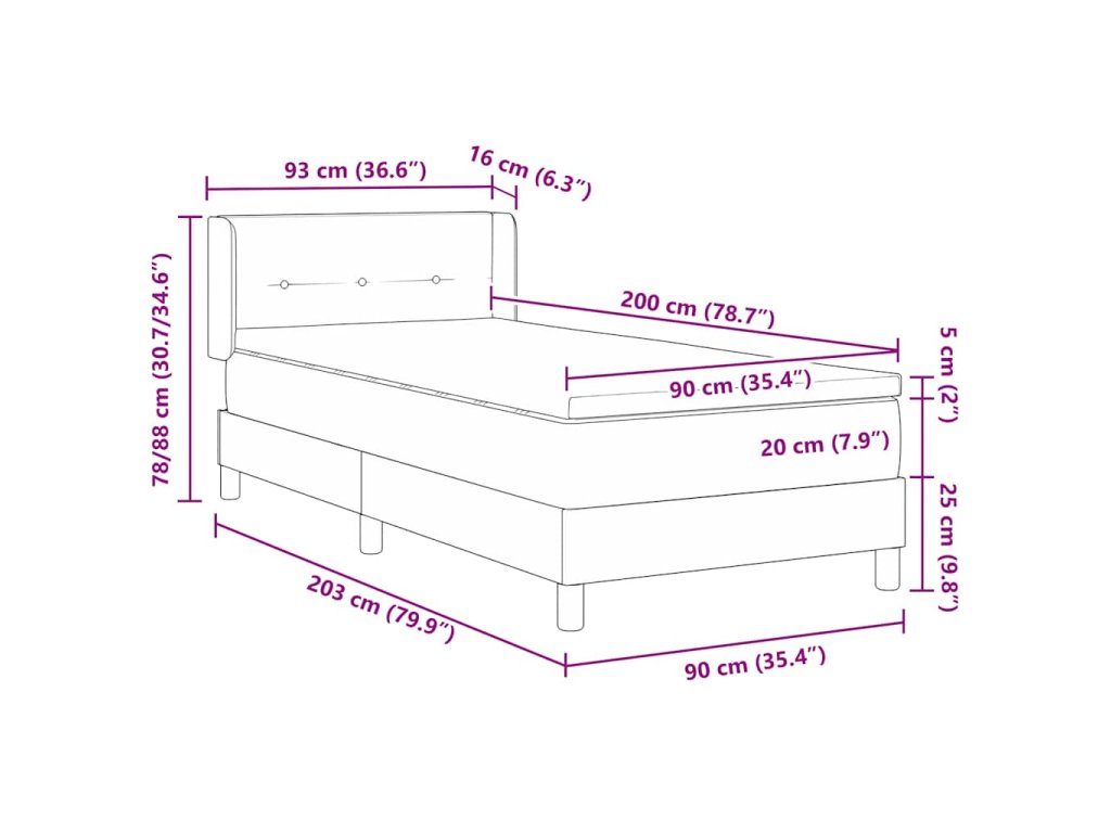 - Veľkosť matraca: Jednolôžková (90 cm x 200 cm / 35" x 79")